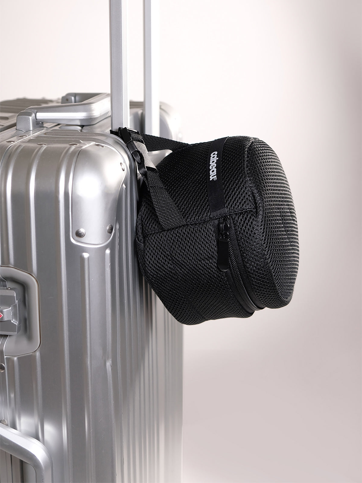 Our deluxe, multi-use case that compacts and stores the pillow at 1/3 its original size. It features an attachable clip for luggage, bags, purses and more. Strap circumference: 8 sq in. (52 sq cm).